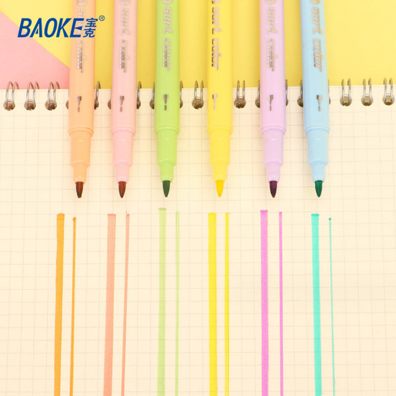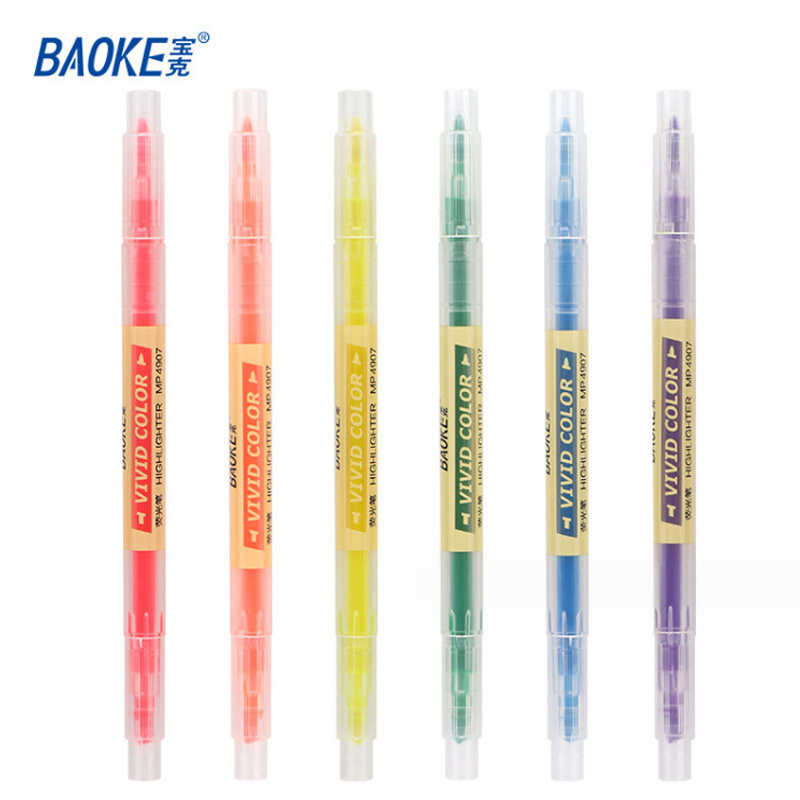 宝克双头荧光笔学生用护眼手账笔六色套装划重点标记笔彩色记号笔