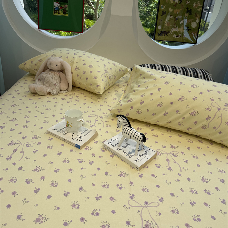 田园风紫碎花奶黄全棉老粗布床单床笠单件亚麻保护罩少女心纯棉布