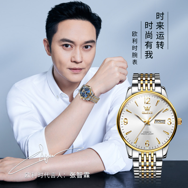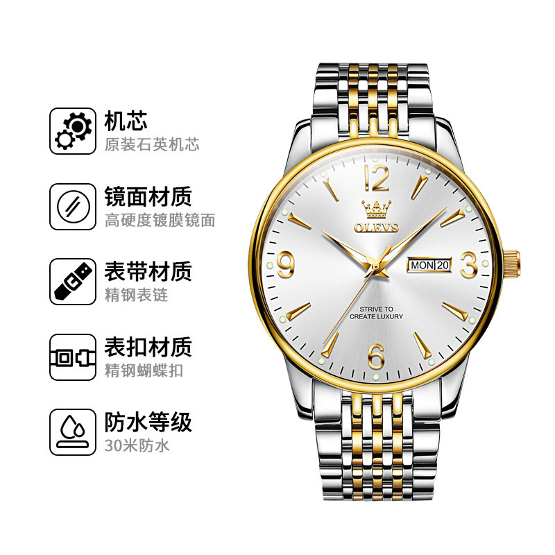 皇冠手表男士满天星表女表男表商务中老年防水表夜光日历表情侣表