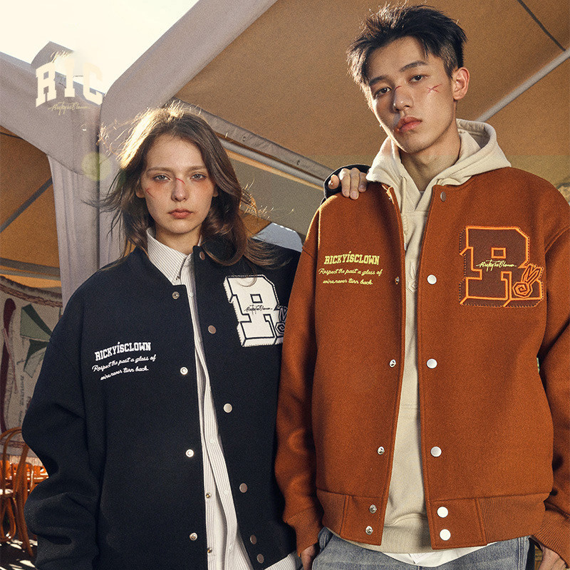 RickyisClown漩涡兔刺绣美式棒球服男生夹克秋季潮牌宽松情侣外套