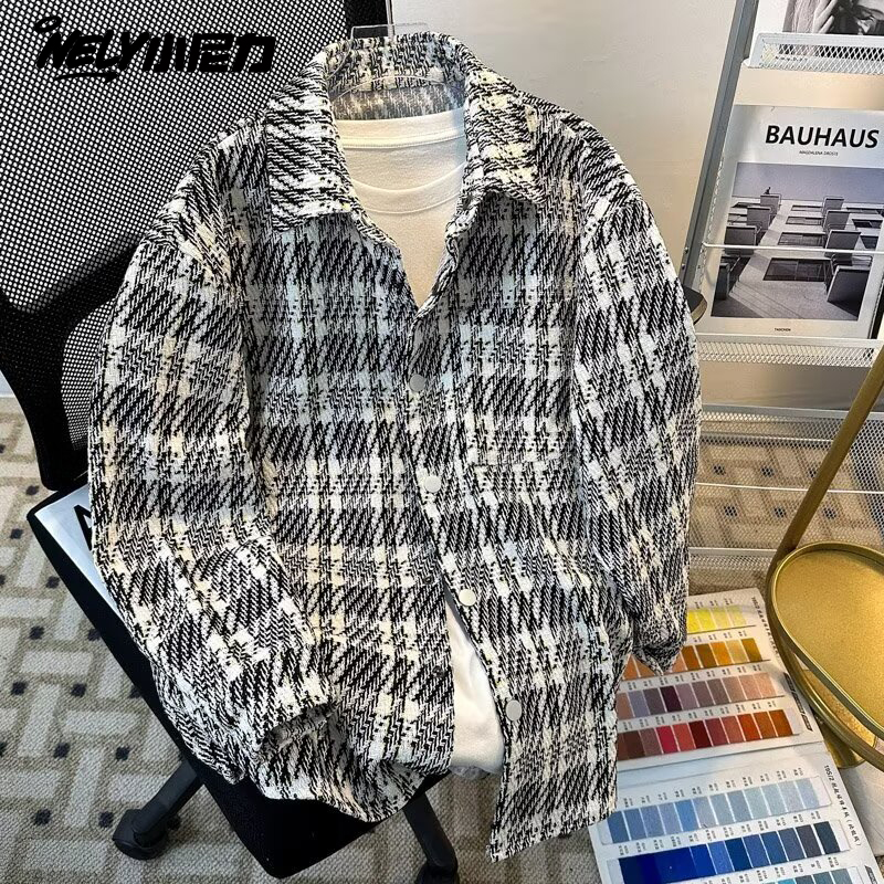 美式潮牌外套男款春秋季小香风格子毛呢夹克大码翻领休闲复古上衣