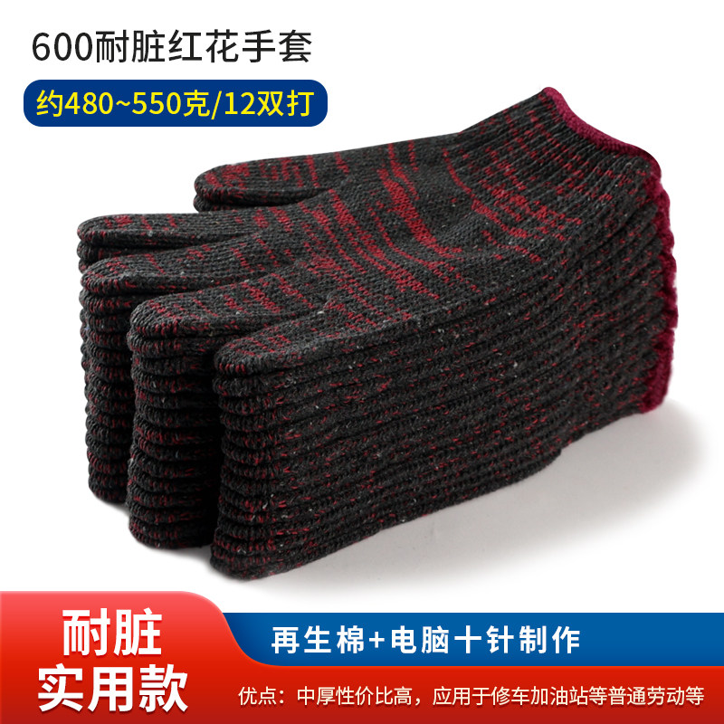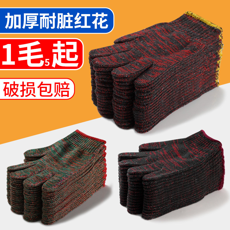 手套劳保耐磨工作棉纱棉线加厚尼龙红花汽修劳动男女工地干活防滑