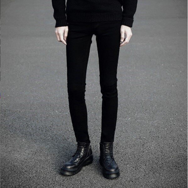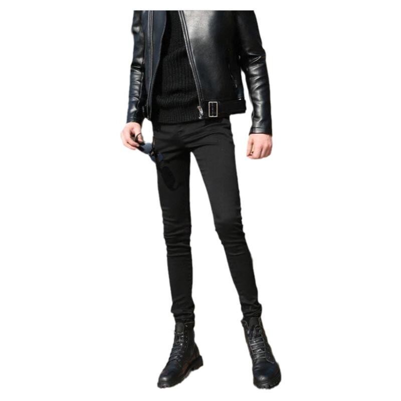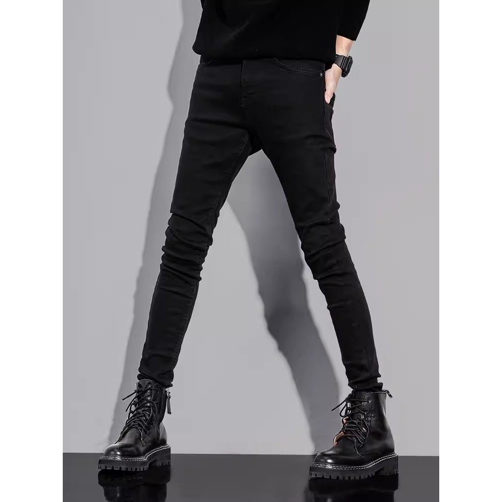 2024秋冬加绒黑色牛仔裤男潮牌韩版潮流小脚弹力裤子紧身休闲长裤