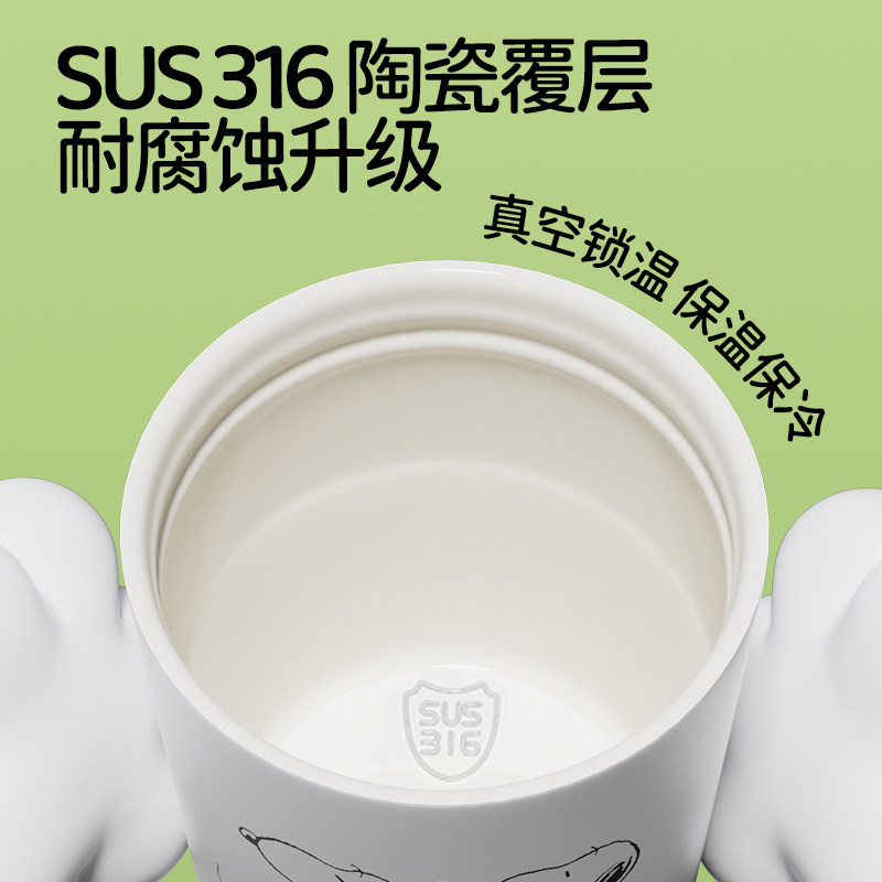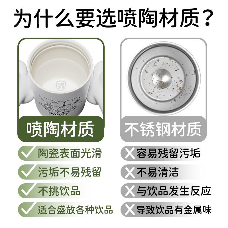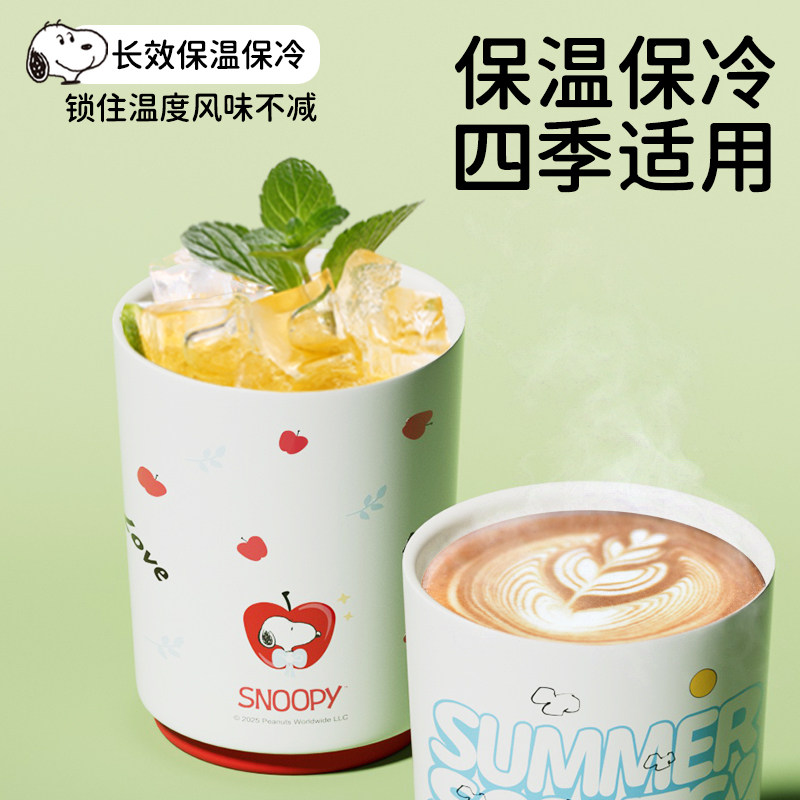 史努比咖啡杯女陶瓷内胆2025新款高颜值学生便携双饮水吸管保温杯