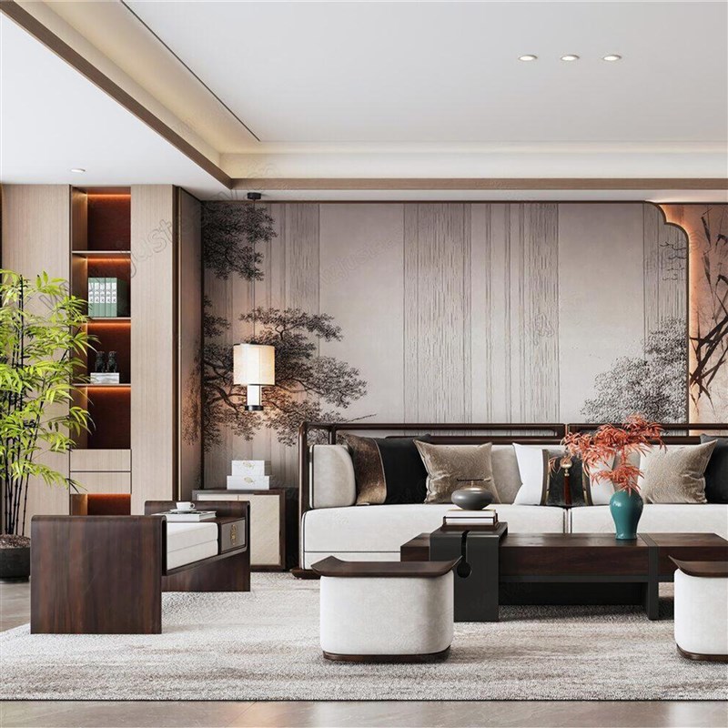 新中式实木沙发组合现代简约禅意客厅别墅样板房轻奢实木沙发家具