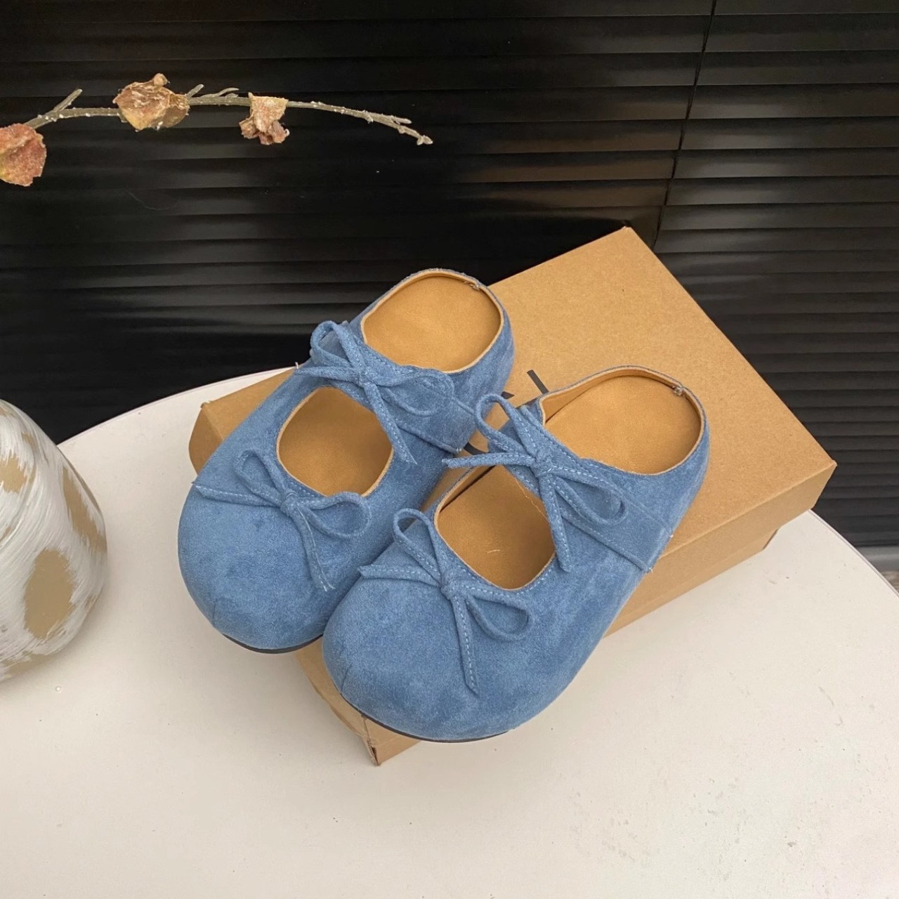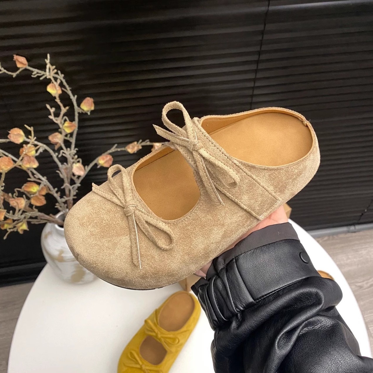 休闲百搭女鞋厚底勃肯鞋2025夏季新款包头半拖鞋一脚蹬蝴蝶结单鞋