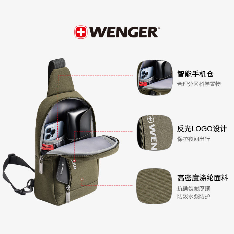 Wenger/威戈斜挎胸包男户外运动便携多口袋防泼水单肩包