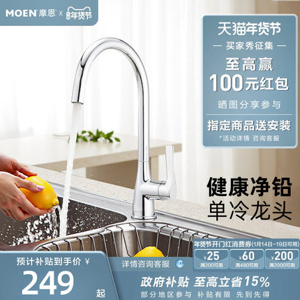 摩恩厨房净铅单冷水龙头防溅水神器厨房水槽阳台柜盆龙头60502