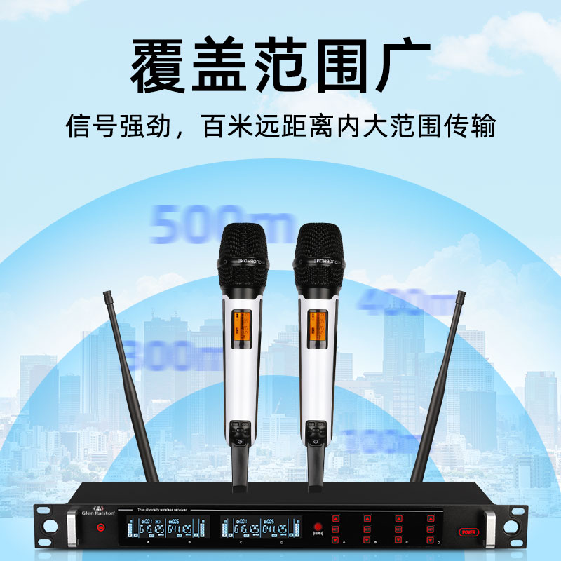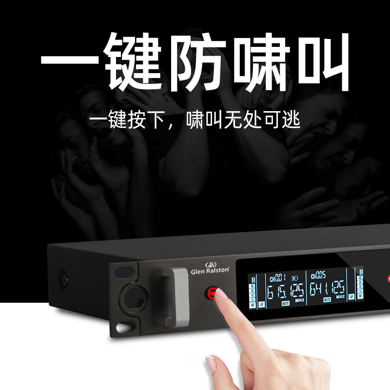 Glen ralston/格伦士顿家用唱歌无线话筒一拖二婚庆舞台专业防啸叫麦克风一拖四演出手持话筒K歌胸麦领夹头戴
