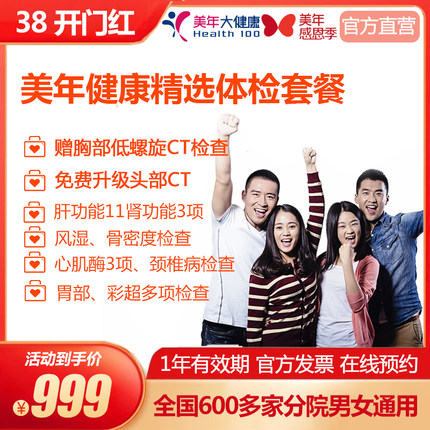 美年大健康 美年健康精选套餐胸部头部CT 彩超中老年通用在线预约