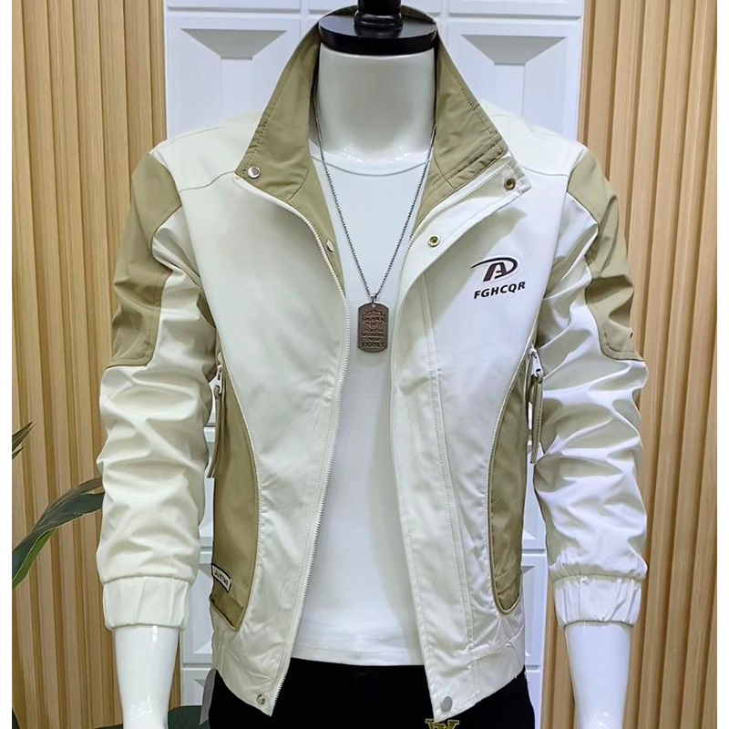 新款男士外套时尚韩版修身夹克春秋季休闲百搭帅气拼色立领上衣潮