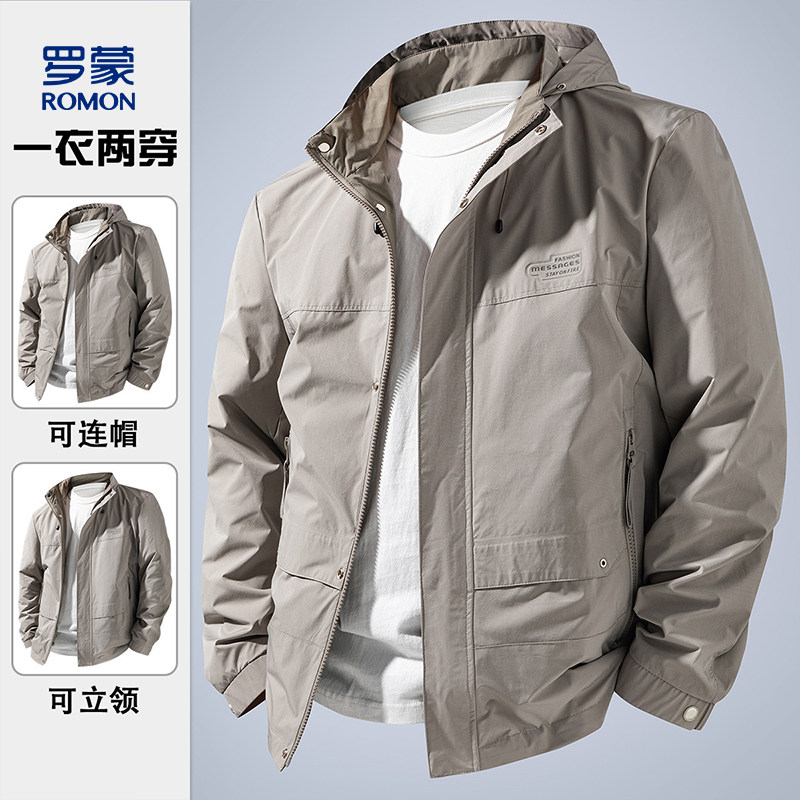罗蒙立领夹克男春秋季户外简约纯色夹克透气休闲基础百搭男士外套