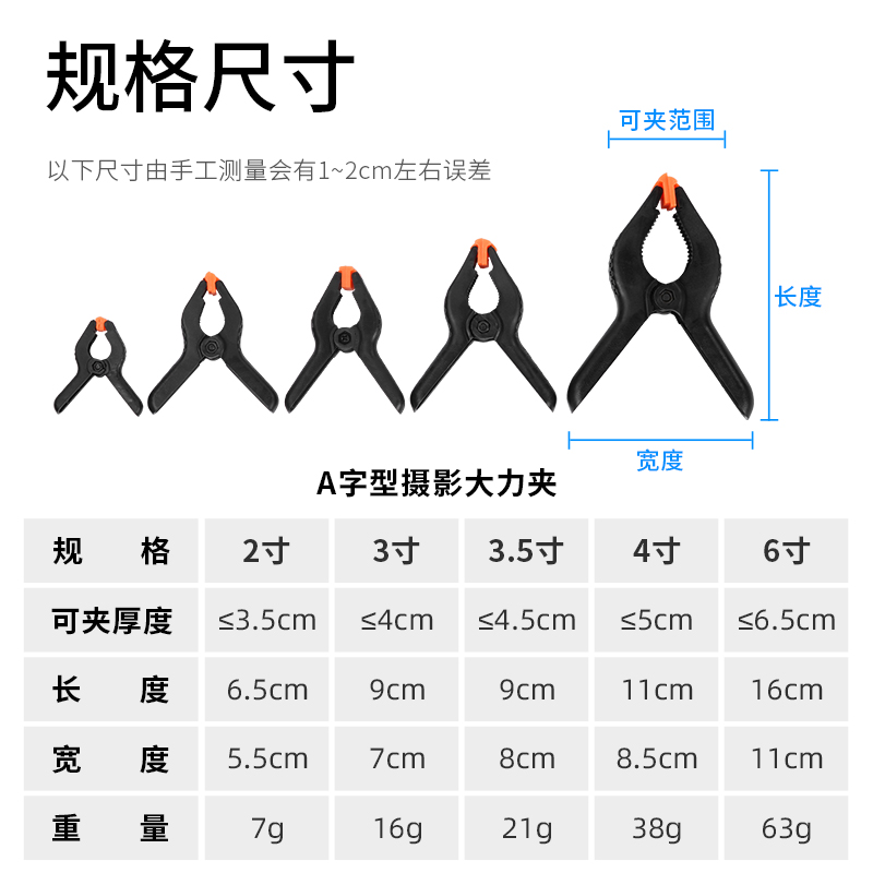 【四只装】摄影夹4寸摄影棚拍照背景布背景纸PVC板绿幕拍摄道具多功能大力夹背景支架摄影硫酸纸专用固定夹子