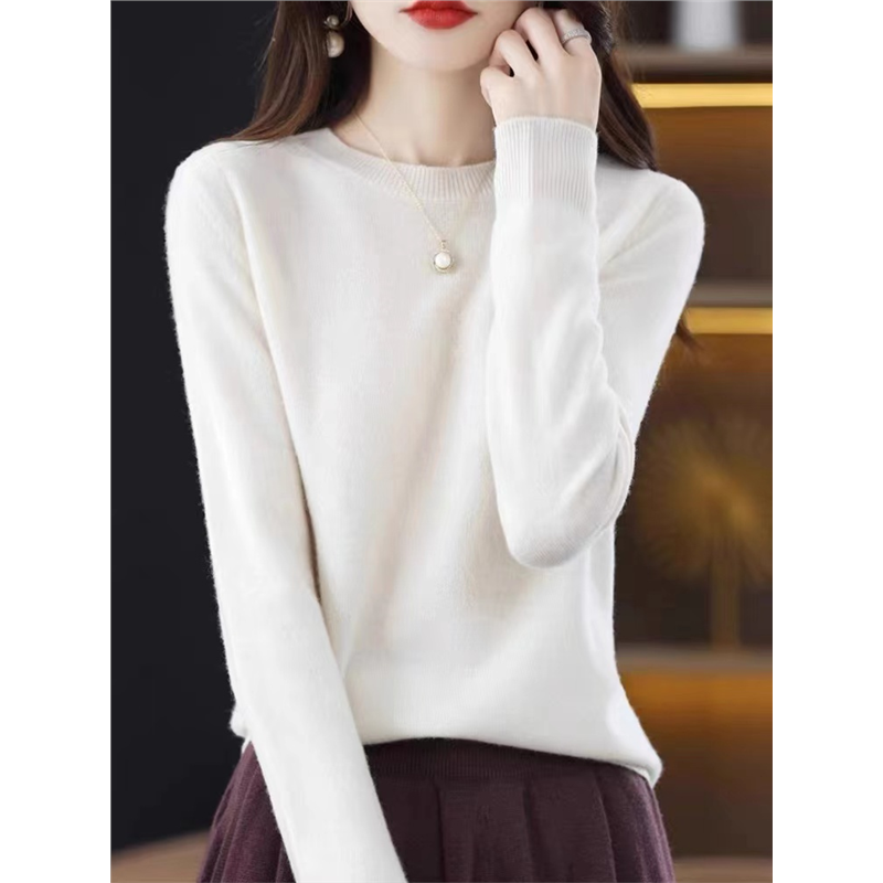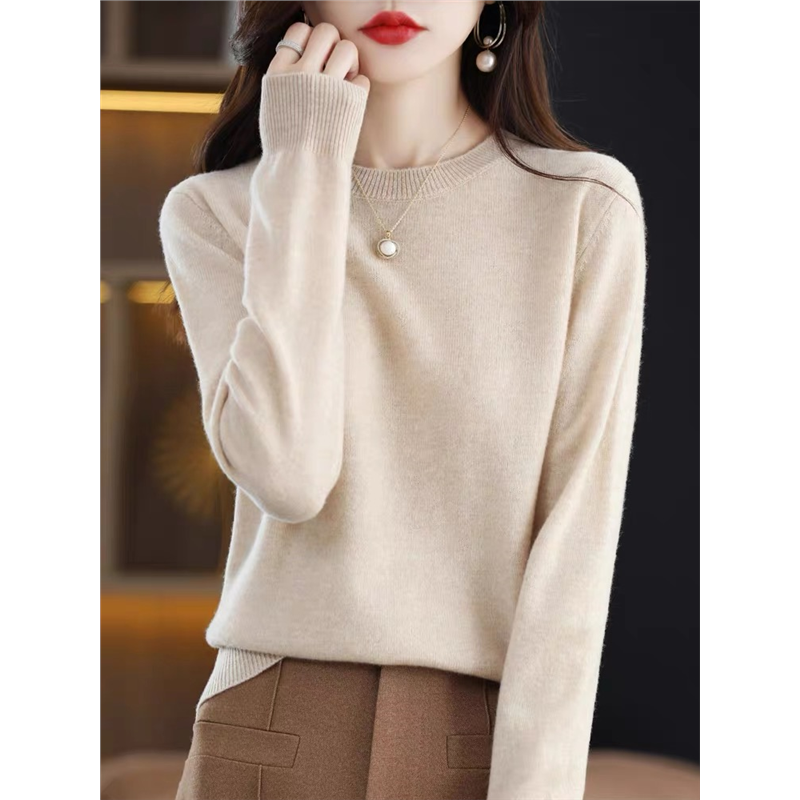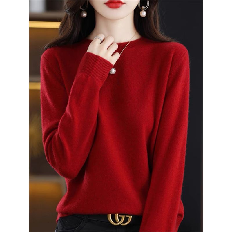 鄂尔多斯市断码羊绒衫女圆领针织毛衣秋冬宽松大码内搭打底衫冬