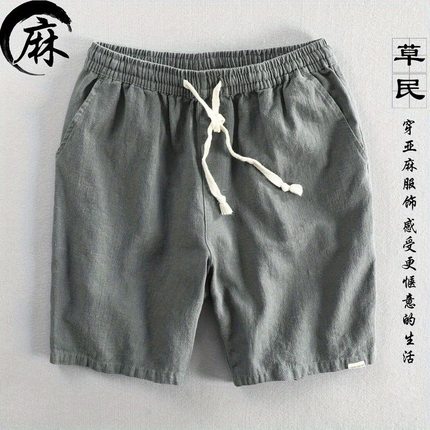 亚麻短裤日系复古五分裤男士夏季纯棉麻纯色薄款沙滩休闲裤子潮流