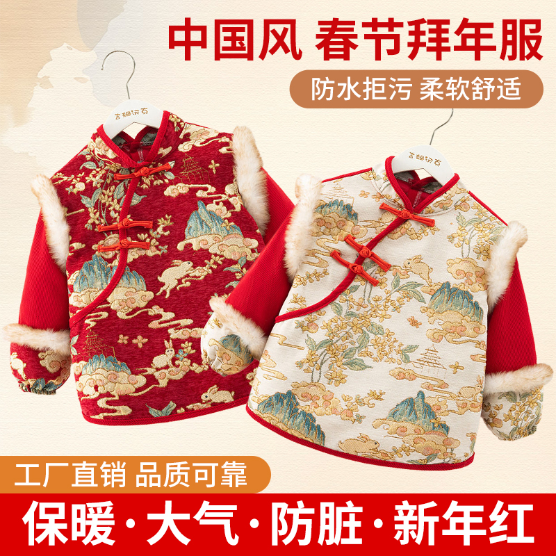 国风罩衣秋冬儿童洋气外穿新春男女宝宝拜年服唐装吃饭围兜反穿衣