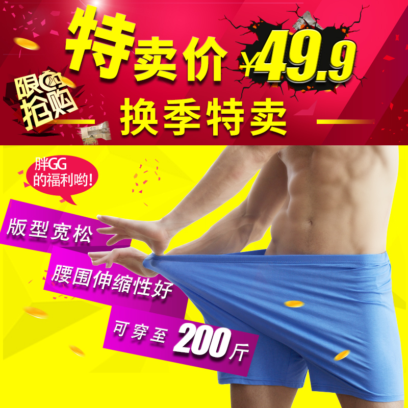 水晶豆男士中老年内裤纯棉平角裤老人宽松加大码肥佬四角短裤全棉