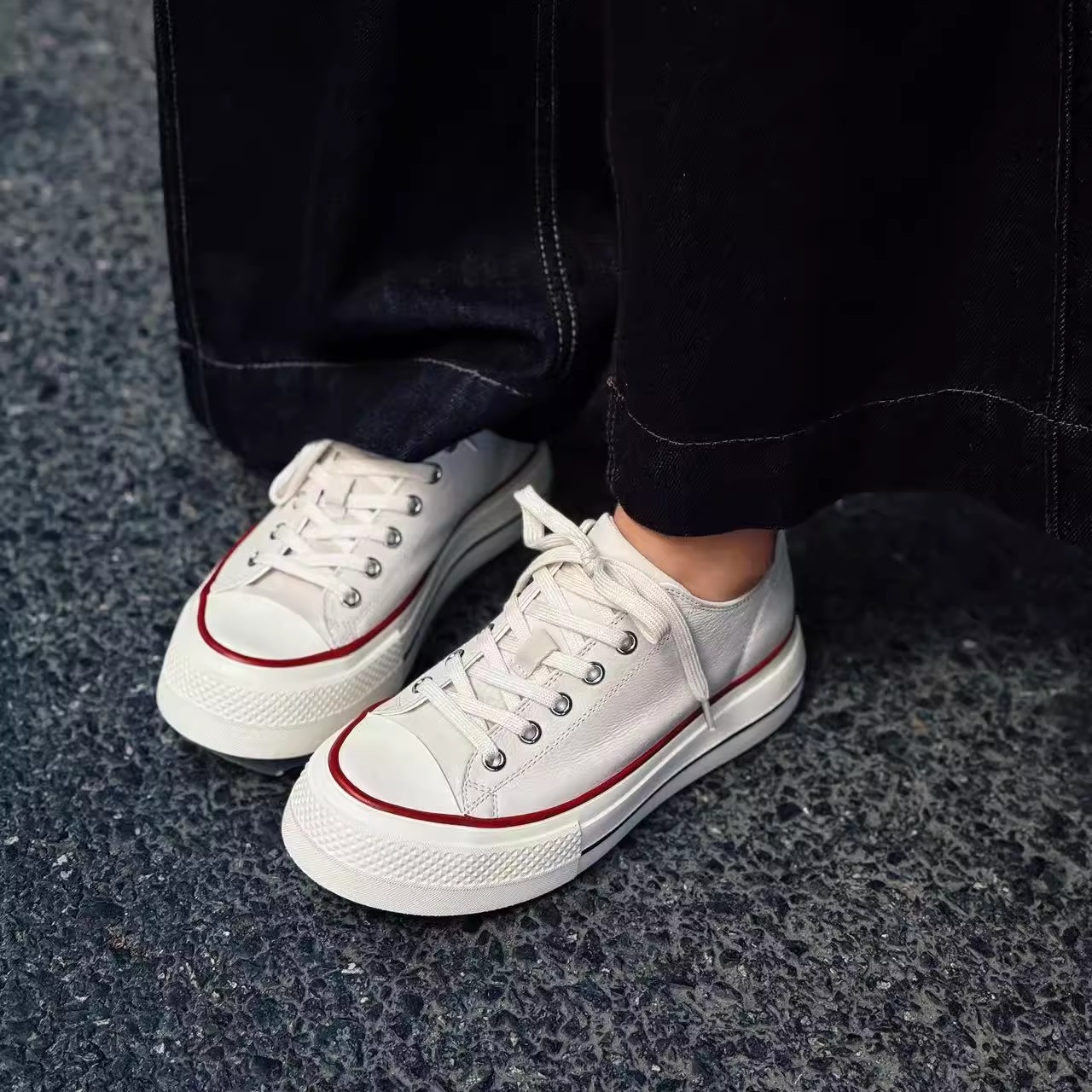 IDO真皮女鞋2025秋季新款百搭韩版厚底外穿轻便学院风休闲板鞋潮
