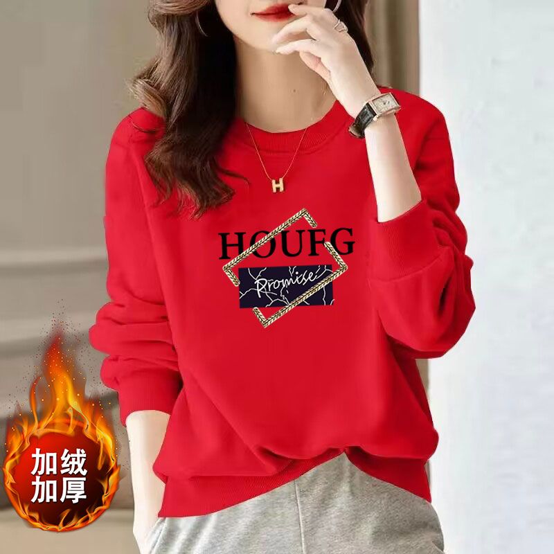 即墨纯棉卫衣冬季加绒加厚洋气秋装百搭长袖宽松正肩内搭学生外套