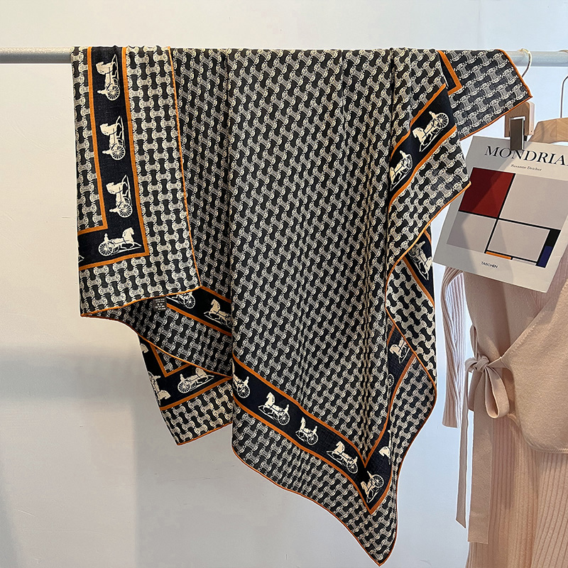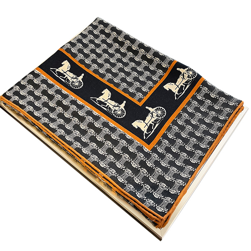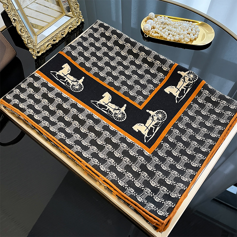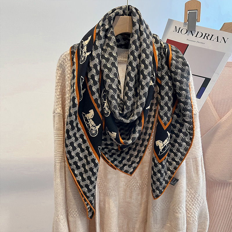 凯旋门马车!真丝羊毛围巾女大牌高级感丝巾丝毛大方巾披肩外搭秋