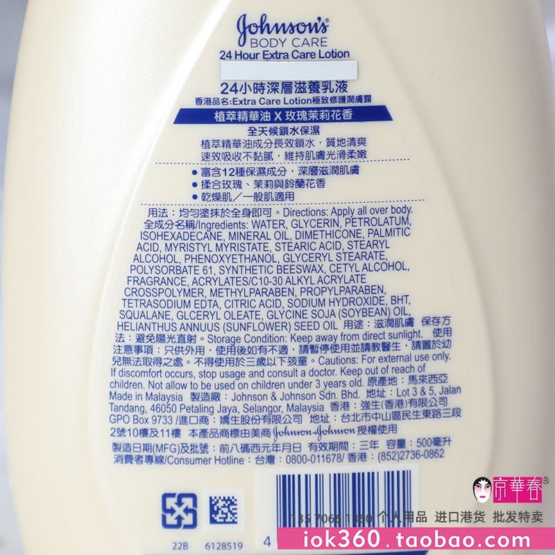 强生Johnson玫瑰茉莉身体乳500ml美肌润肤乳保湿滋润干燥进口港货