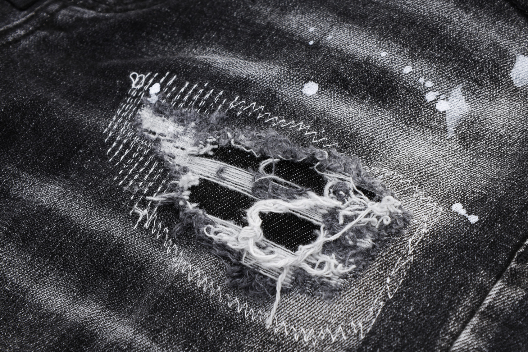 欧美潮牌烟灰水洗泼墨涂鸦牛仔裤