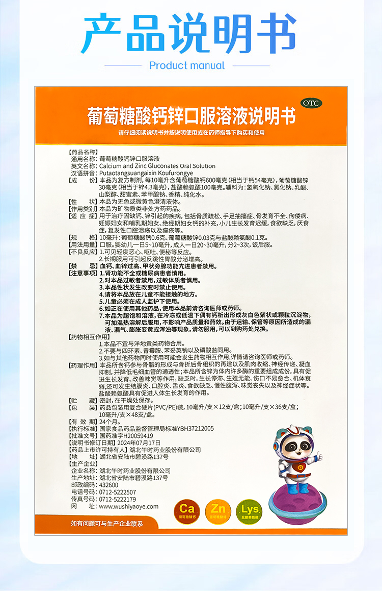 【扶娃】葡萄糖酸钙锌口服溶液10ml*36支/盒骨质疏松缺钙妊娠痤疮补钙