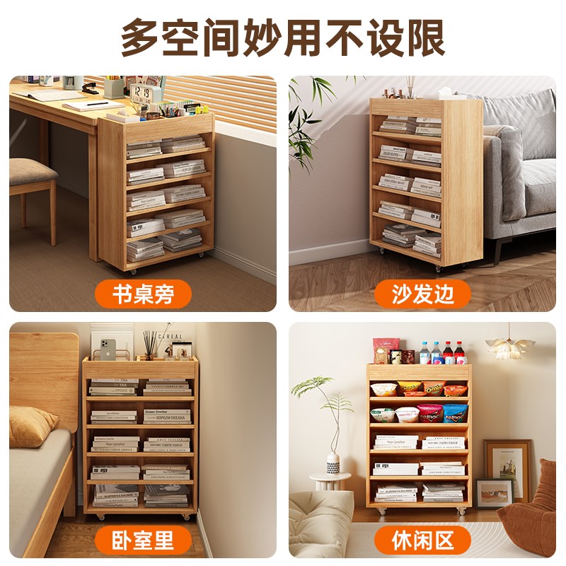 速发实木书桌旁小书架可移动落地置物架办公桌下收纳柜子儿童书柜