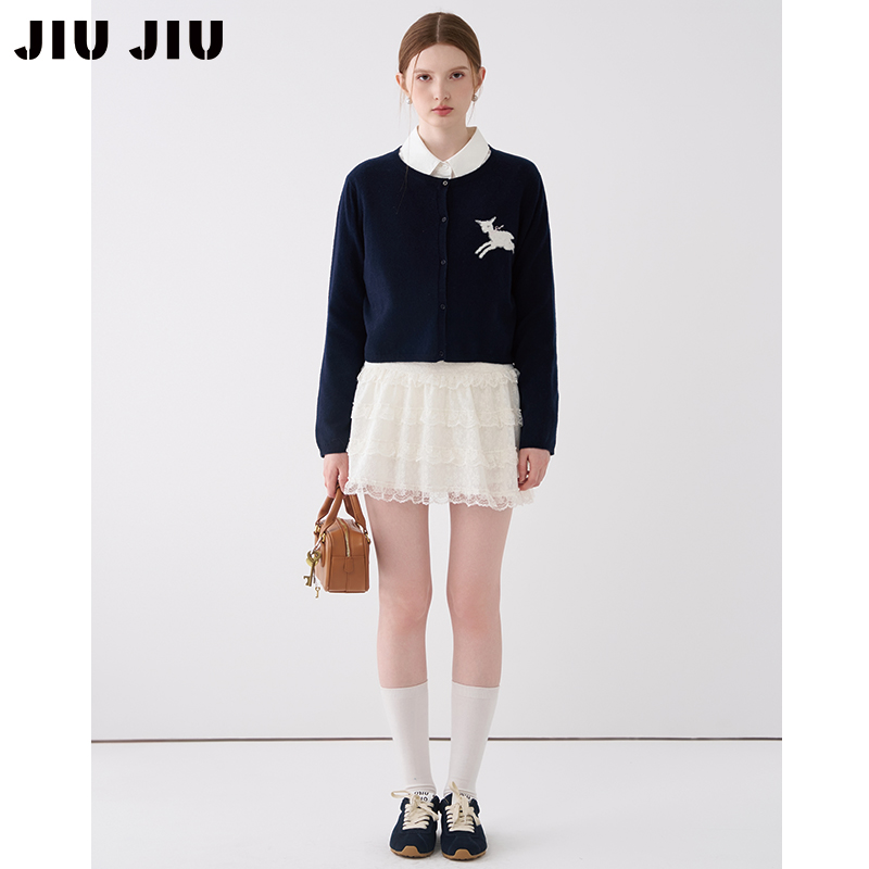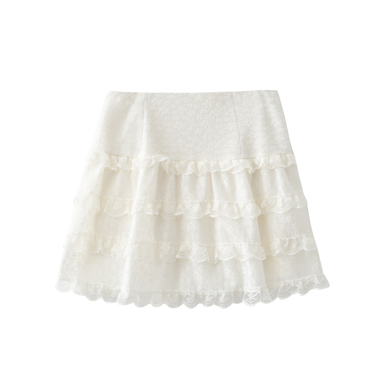 JIUJIU复古芭蕾风白色蕾丝半身裙女秋2025新款小个子蛋糕裙短裙