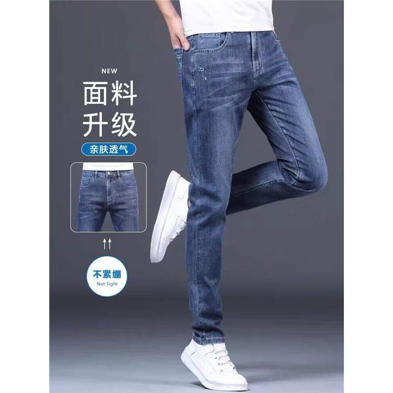 夏天冰丝牛仔裤男夏季薄款宽松直筒高端广州新塘男裤超薄休闲裤子