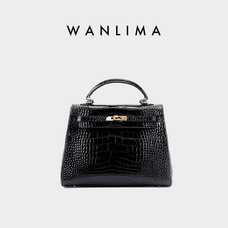 万里马气质通勤风女包牛皮斜挎鳄鱼纹手提单肩包超性价比真皮女包