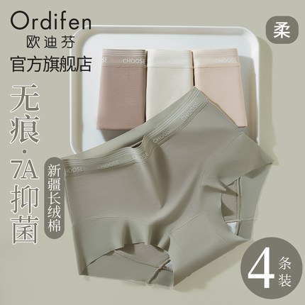 欧迪芬纯棉内裤女无痕中腰运动风全棉裆2024新款秋季女生平角裤