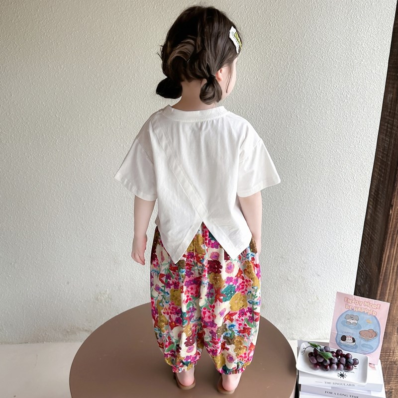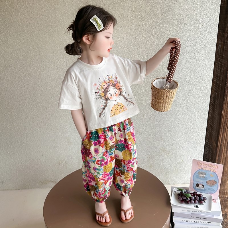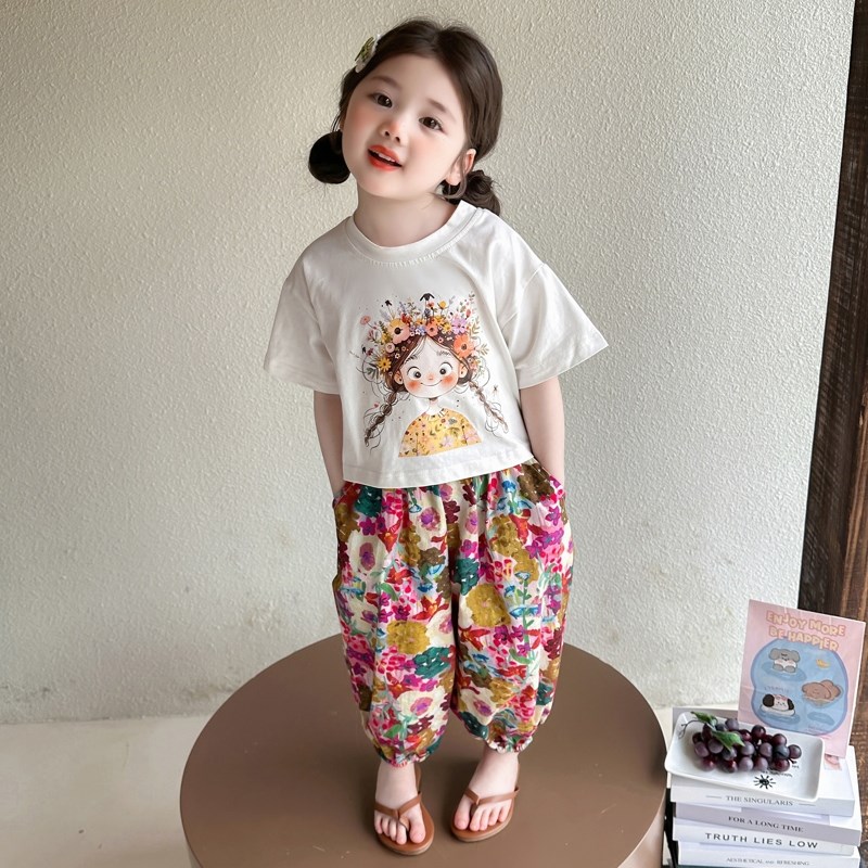 女童套装夏季2025新款儿童短袖防蚊裤两件套女孩宝宝洋气时髦夏装