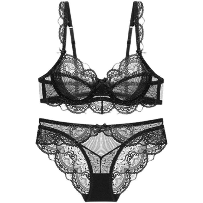 速发丝款亚性感超薄大密显小秘胸文胸套装蕾新透明大码内衣夏