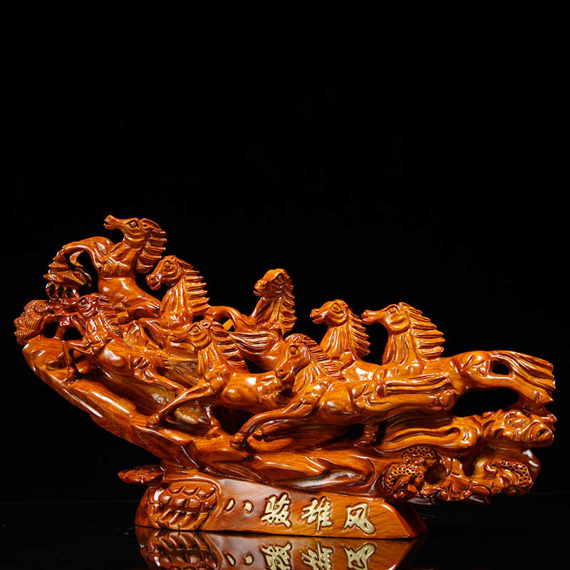 花梨木雕八马八骏雄风摆件红木雕刻工艺品家居公司办公室装饰摆设