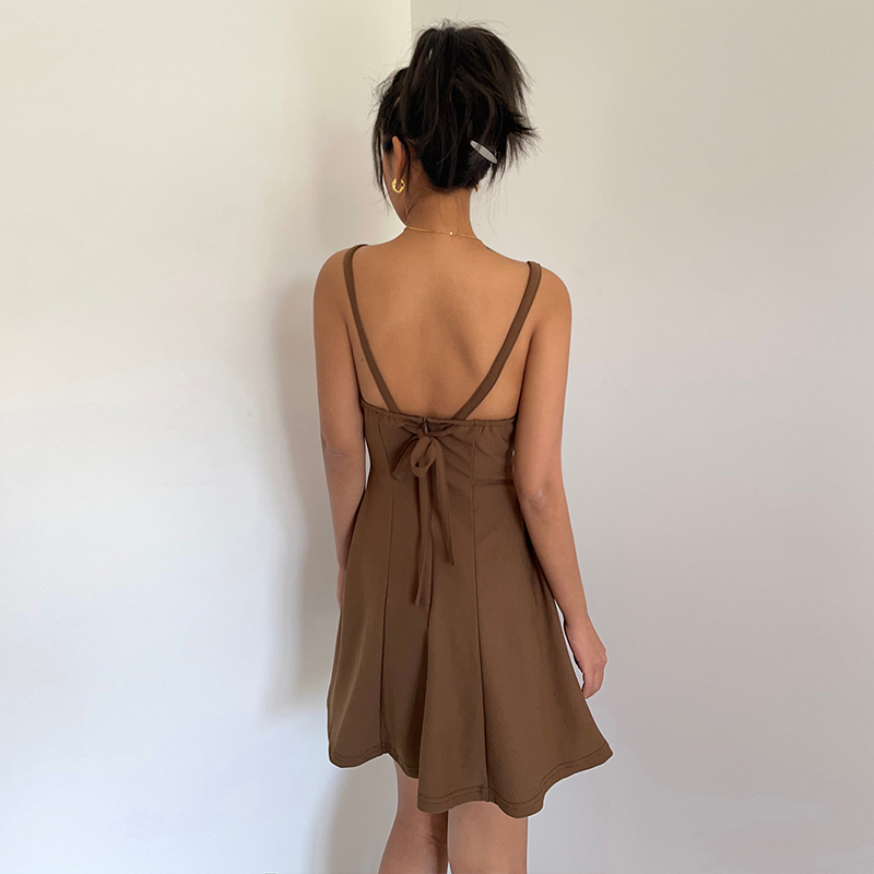 性感chic高级感简约露背美背吊带连衣裙女夏季小个子系带短裙