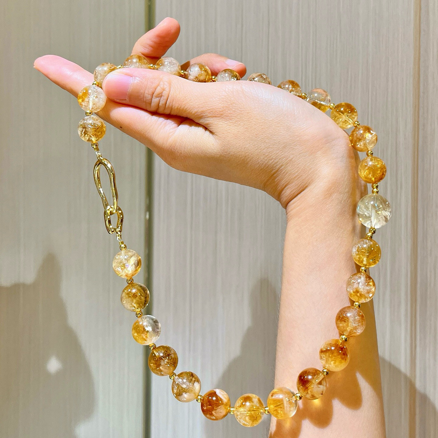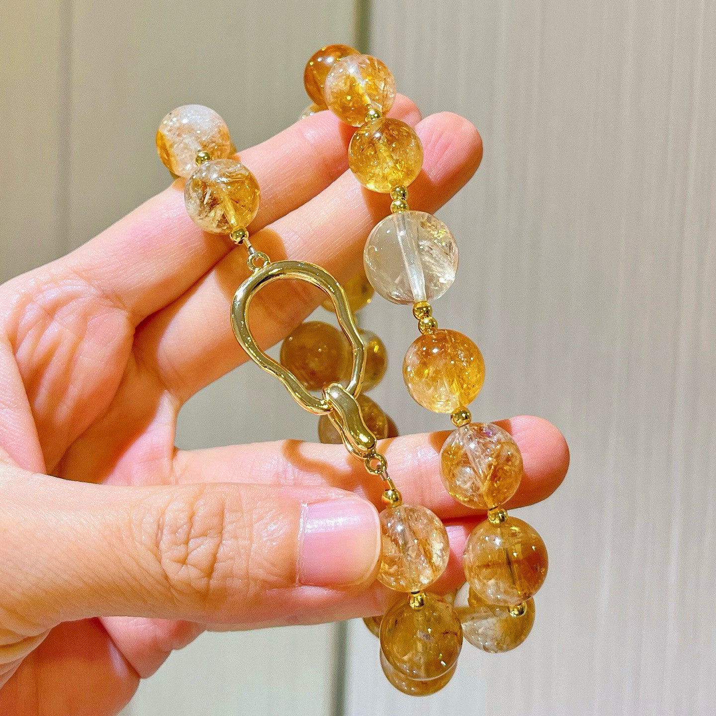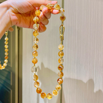 12mm大颗粒天然老料黄水晶黄塔晶设计感项链锁骨链