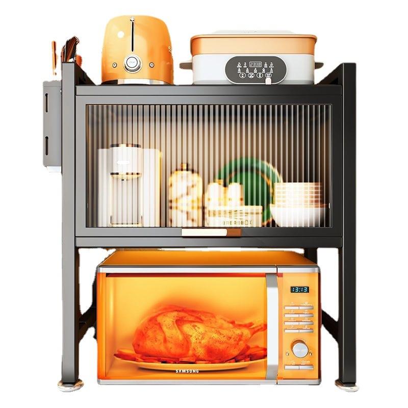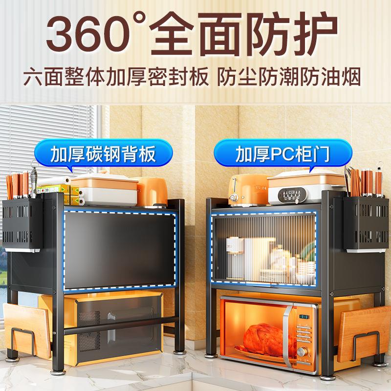 厨房微波炉置物架多层台面防尘橱柜碗柜家用多功能烤箱碗碟收纳架