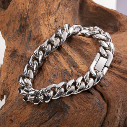 宽版古巴手链钛钢银白色嘻哈简约个性情侣手环男女潮搭手腕装饰品