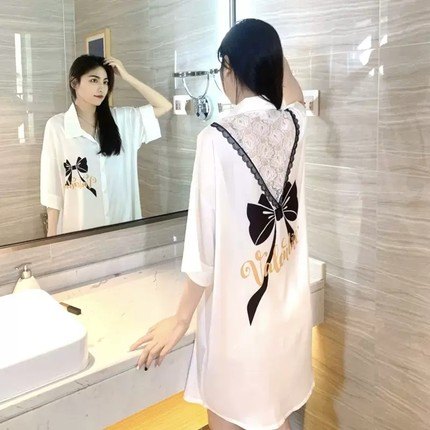 桑蚕丝真丝睡裙女2026年新款夏季短袖薄款高级蝴蝶结衬衫性感睡衣