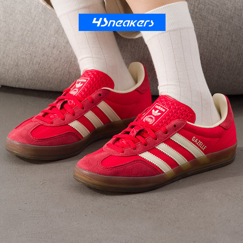 ADIDAS三叶草 GAZELLE INDOOR白蓝红色条纹复古T头拼接板鞋德训鞋