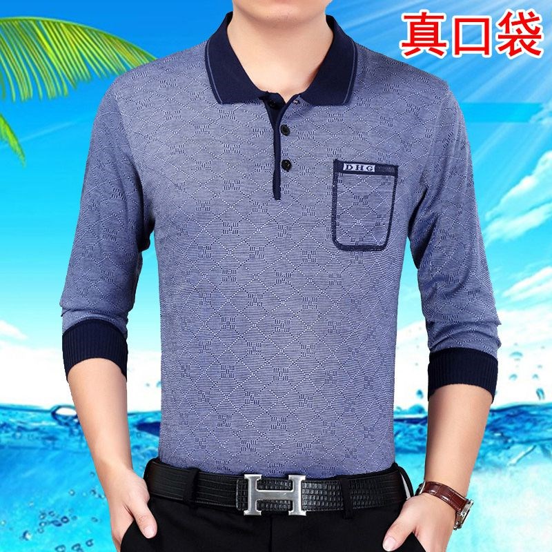 中老年长袖t恤男宽t松中领父亲中年秋衣O打底衫春季纯色老头衫