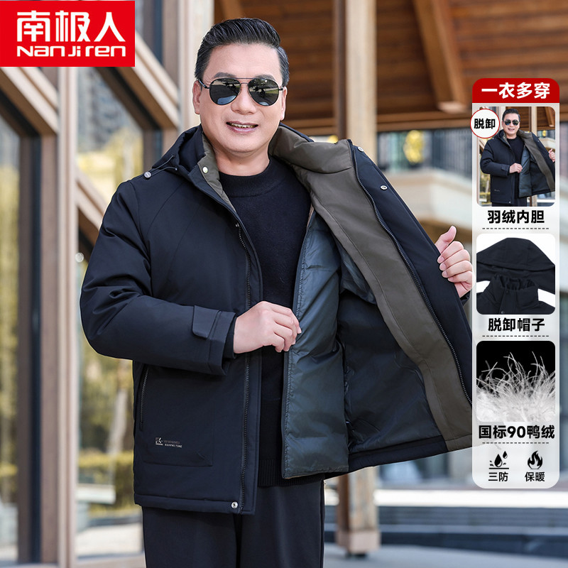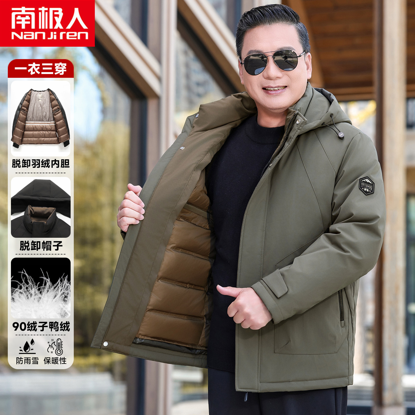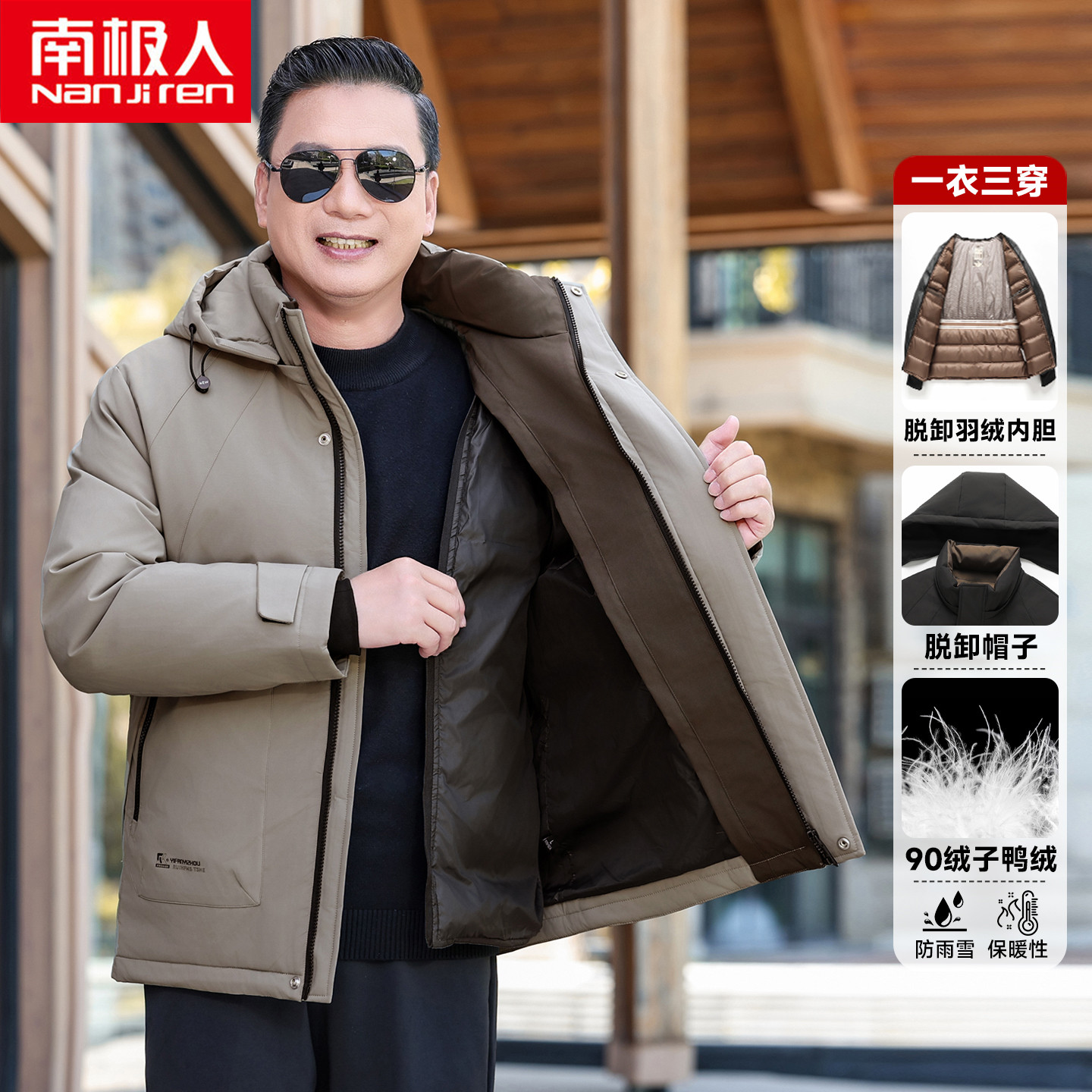 南极人中年男士羽绒服冬季可脱卸内胆大码中老年爸爸冬装保暖外套