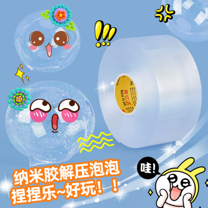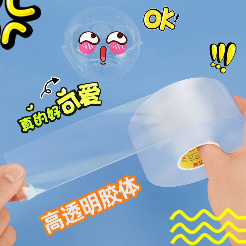 自制强力纳米双面胶高粘不留痕纳米胶带解压空气捏双面胶diy糯米胶魔力胶解压水球无毒透明手工双面胶