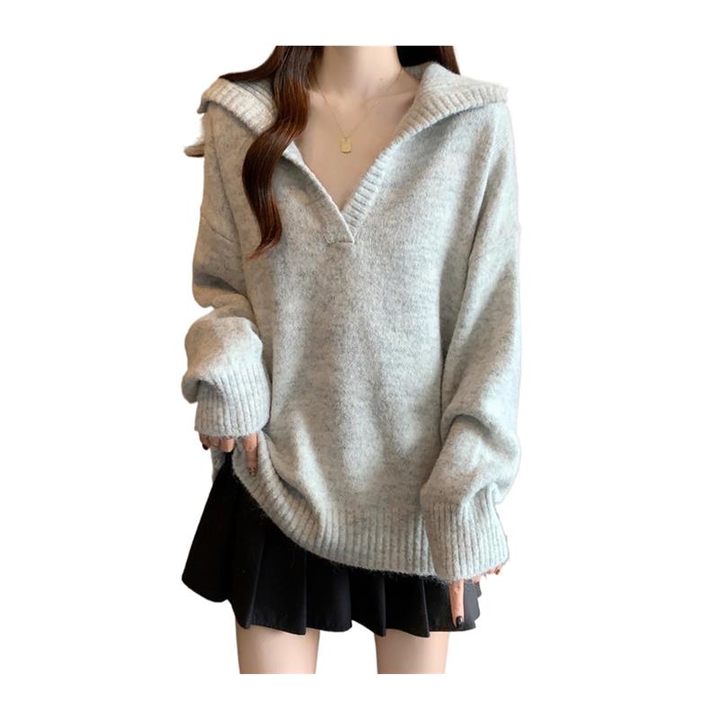 宽松慵懒风翻领加厚针织衫毛衣女秋冬大码胖mm宽松软糯打底衫上衣