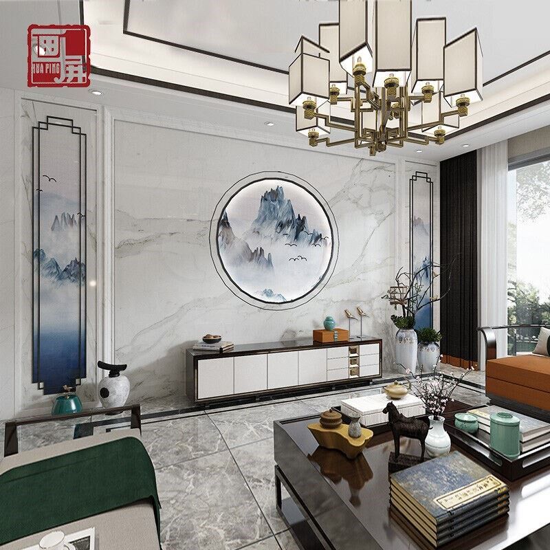 画屏瓷砖客厅微晶石电视背景墙现代简G约新L中式仿大理石墙砖石材
