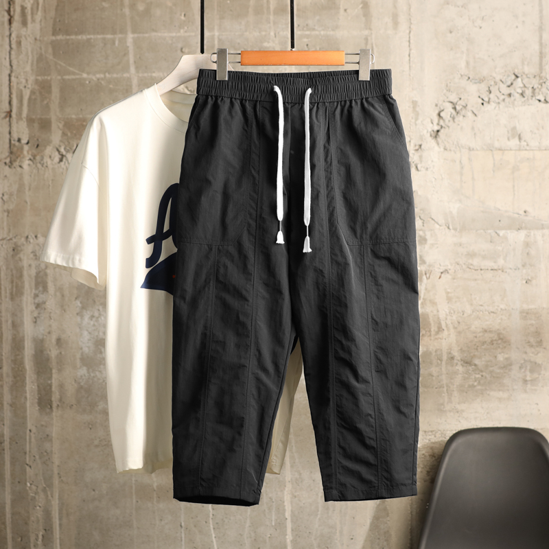 高级感男士冰丝休闲裤夏季薄款八分工装裤外穿百搭宽松8分哈伦裤