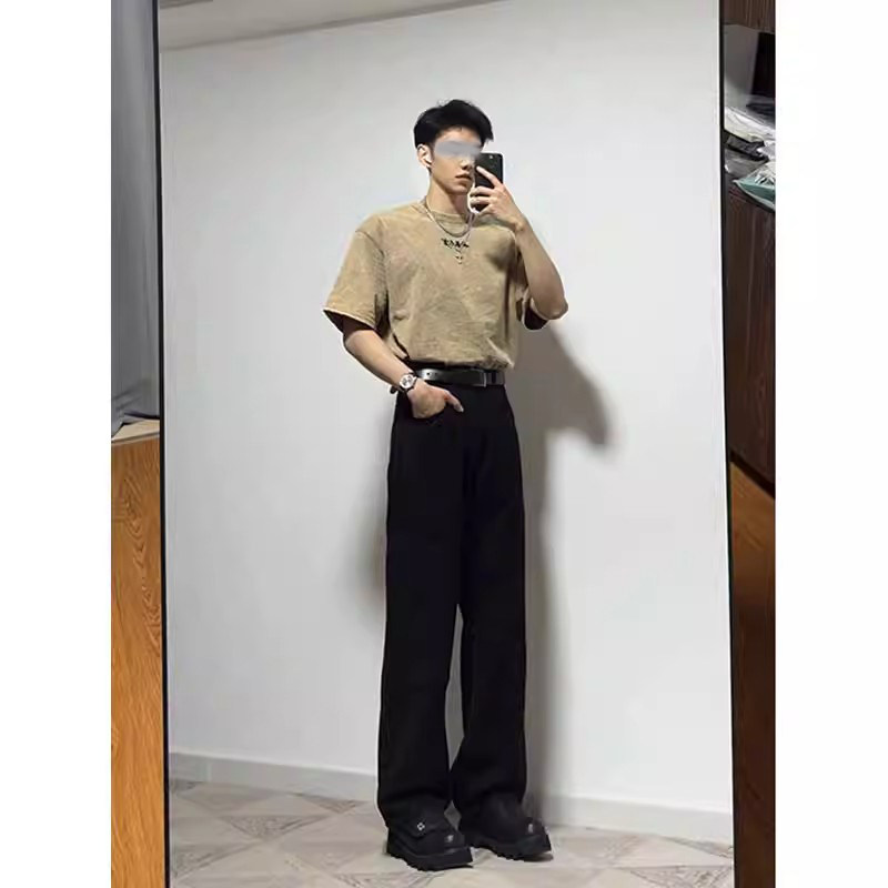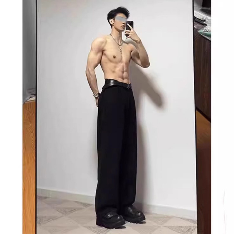 cleanfit黑色西装裤子男款高腰垂感春夏高街宽松直筒休闲西裤阔腿