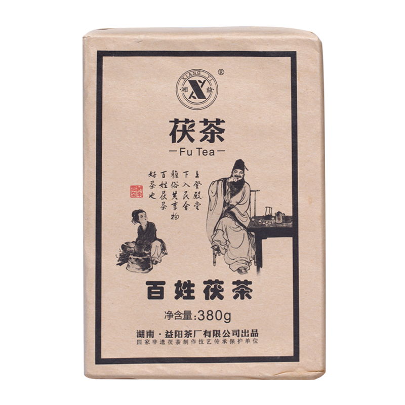 黑茶湖南安化湘益茯茶金花茯砖茯砖茶黄丝带 2019年百姓茯茶380g
