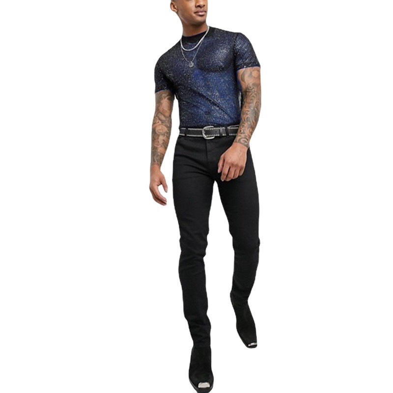 透视薄款透气时尚夜店派对打底衫欧美男装网纱性感男士T恤